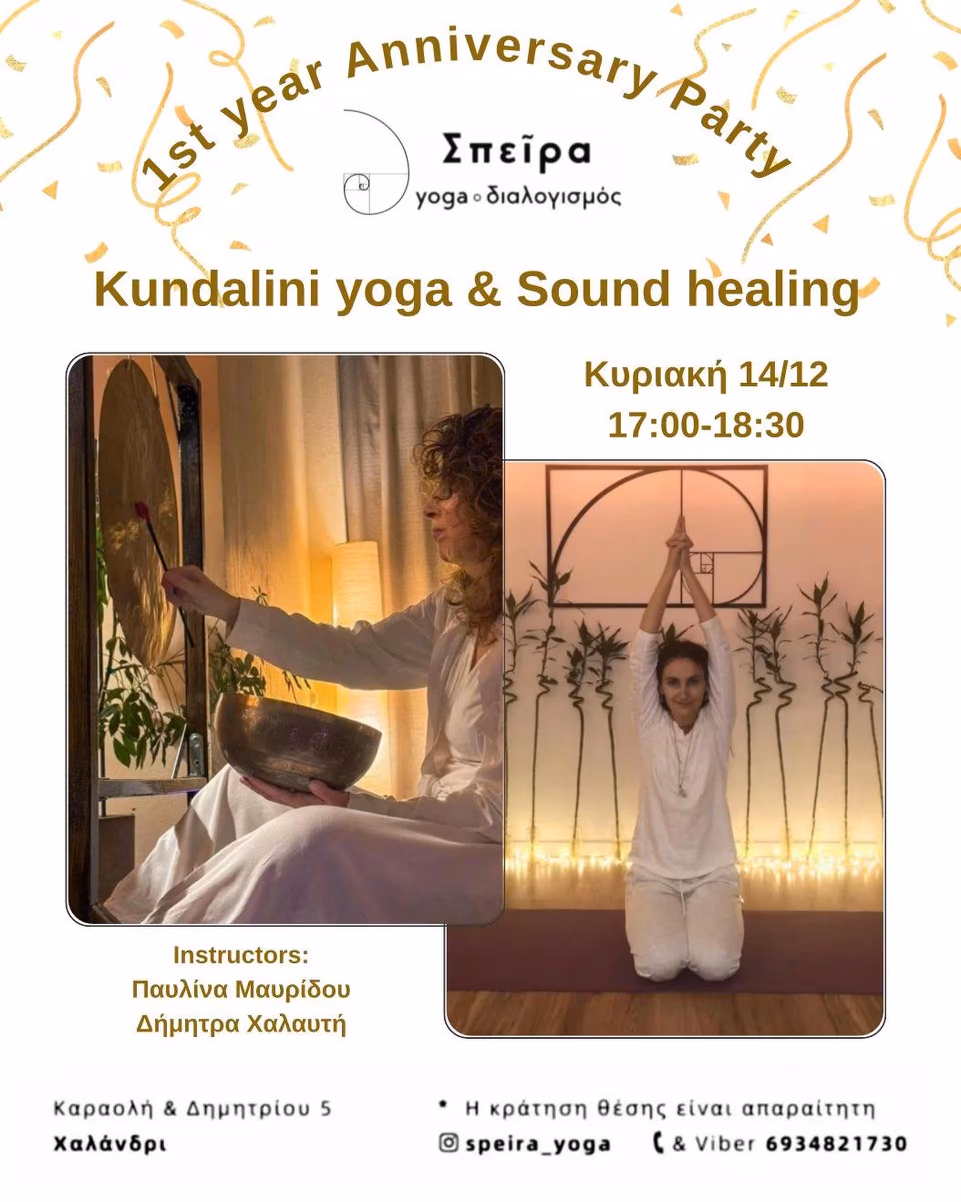 Γιορτάζουμε τον πρώτο χρόνο λειτουργίας της Speira Yoga και σας καλούμε σε ένα μοναδικό μάθημα kundalini yoga με sound healing!